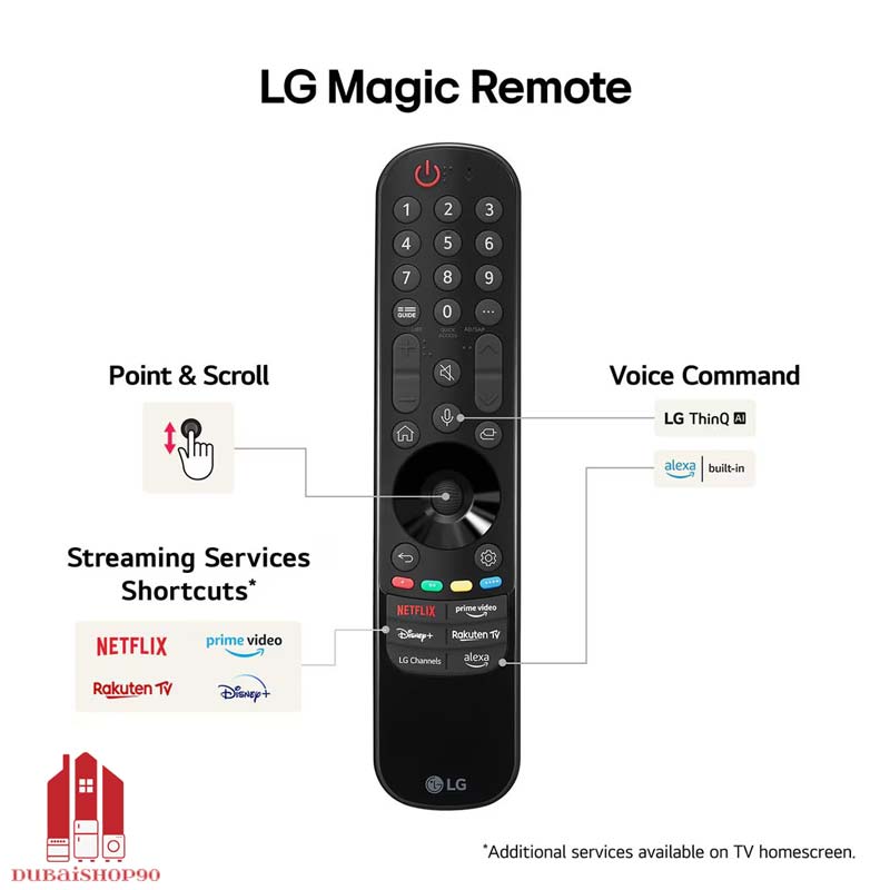 قلب امکانات هوشمند این تلویزیون، سیستم عامل اختصاصی webOS است. این پلتفرم با رابط کاربری ساده، روان و گرافیکی، دسترسی سریع به اپلیکیشنها، تنظیمات و محتوای دلخواه را برای کاربر فراهم میسازد. از سرویسهای محبوبی مانند Netflix، YouTube، Prime Video، Disney+ و دهها اپ دیگر میتوان تنها با چند کلیک استفاده کرد، بدون نیاز به دستگاه جانبی.