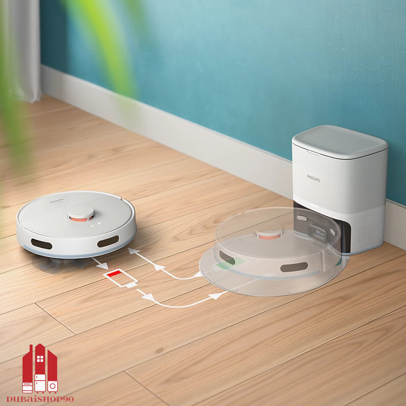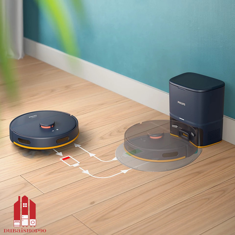 یکی از ویژگی‌های منحصر به‌ فرد این ربات، ایستگاه خالی‌ سازی خودکار 3 لیتری است که با کیسه‌های S-bag فیلیپس کار می‌کند. این سیستم می‌تواند گرد و غبار جمع‌آوری‌شده را تا 70 روز در خود نگه دارد، بدون اینکه نیازی به تخلیه دستی داشته باشید. این قابلیت برای خانواده‌هایی که به پاکیزگی و بهداشت بیشتر اهمیت می‌دهند، خصوصا در برابر آلرژی و حساسیت‌های تنفسی، یک مزیت بی‌بدیل است.