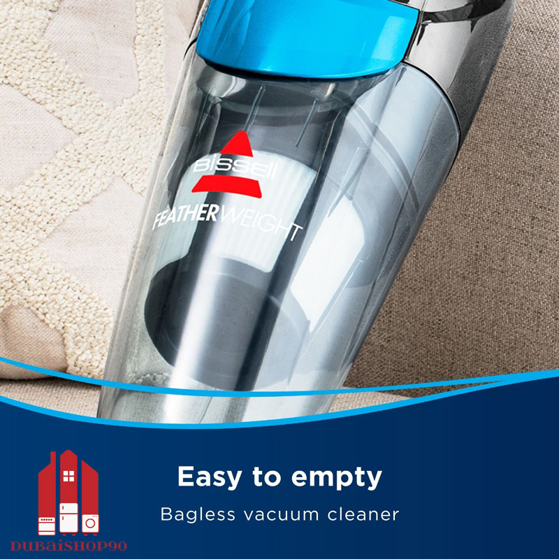 مخزن بدون کیسه (Bagless) این دستگاه، به‌ صورت کاملا شفاف طراحی شده تا کاربر در هر لحظه، دید کاملی نسبت به میزان گرد و غبار جمع‌آوری‌ شده داشته باشد. این ویژگی علاوه بر جنبه‌ کاربردی، جلوه‌ای مدرن به ظاهر دستگاه می‌بخشد. طراحی مخزن به‌ گونه‌ای است که تخلیه‌ آن با استفاده از سیستم Easy‑Empty™ تنها در چند ثانیه و بدون تماس مستقیم با آلودگی‌ها انجام می‌گیرد.