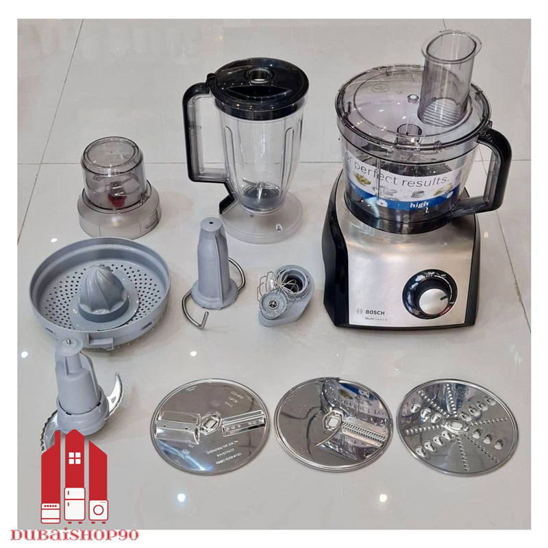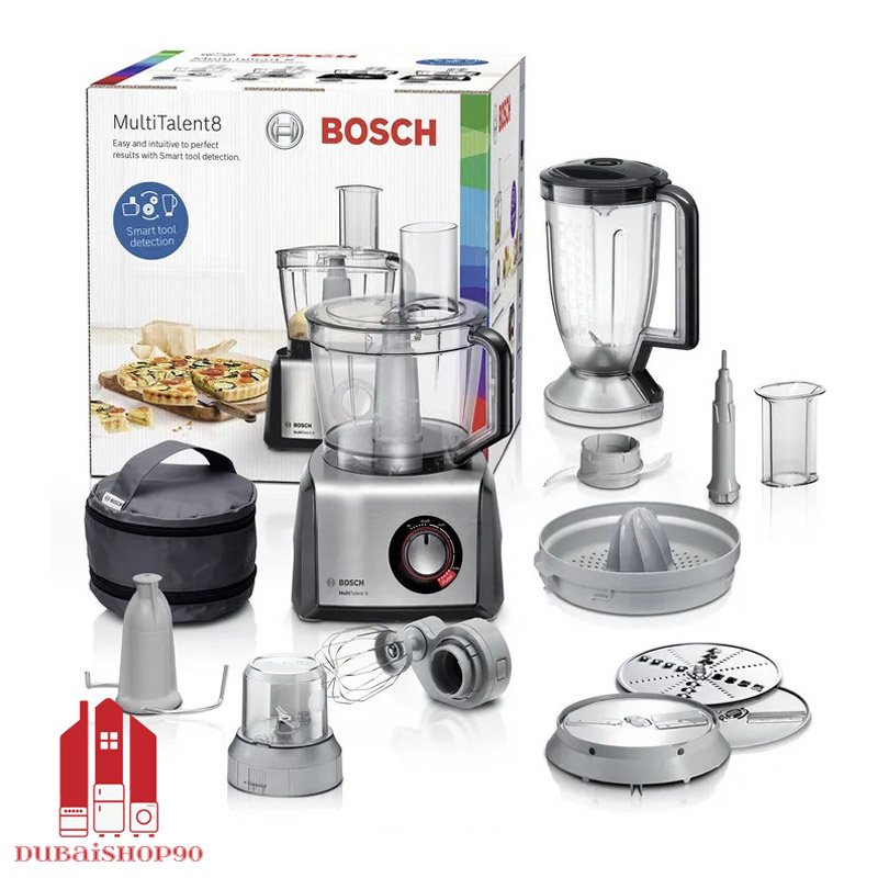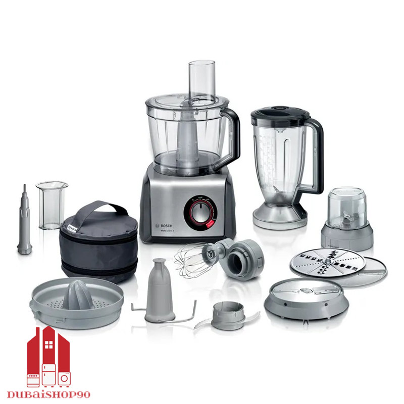 از نظر طراحی، بدنه ای مستحکم و شیک با ترکیب رنگ نقرهای و مشکی جلوهای مدرن به آشپزخانه میبخشد. ظرف اصلی با ظرفیت 3.9 لیتر و پارچ مخلوط کن 1.5 لیتری، این امکان را فراهم میکند تا چه برای وعدههای کوچک و چه برای مهمانیهای بزرگ، بدون هیچ محدودیتی غذا آماده شود. تیغههای استیل ضدزنگ با تکنولوژی خاص بوش، دوام طولانی مدت و برشهایی دقیق و یکدست را تضمین میکنند.
