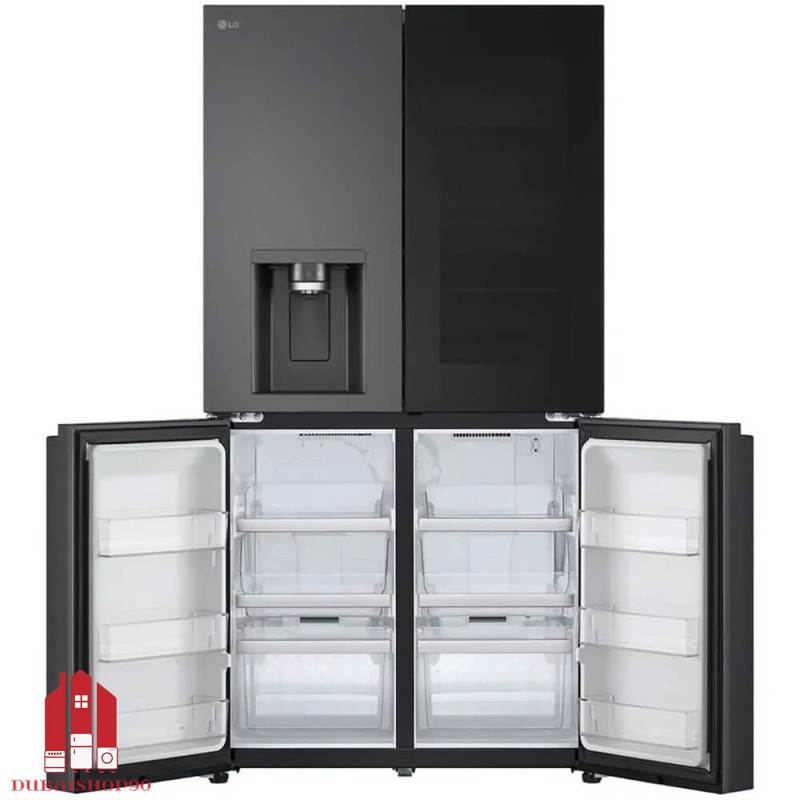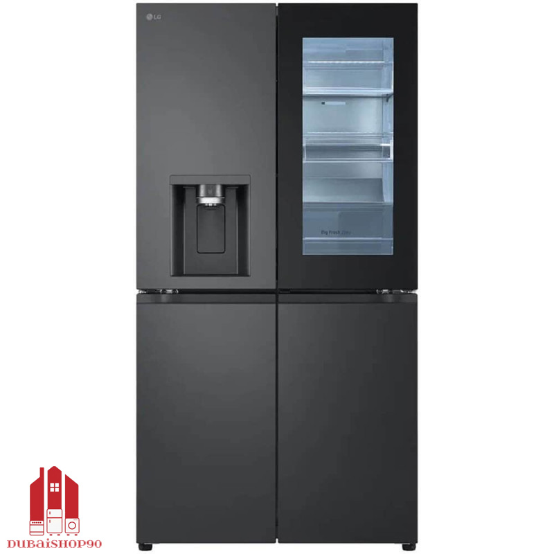 یکی از چشمگیرترین عناصر طراحی، پنل شیشه‌ای هوشمند InstaView Door-in-Door است. این پنل با دو ضربه‌ آرام، فضای داخلی یخچال را روشن می‌کند و امکان مشاهده‌ محتویات بدون نیاز به باز کردن درب را فراهم می‌سازد.