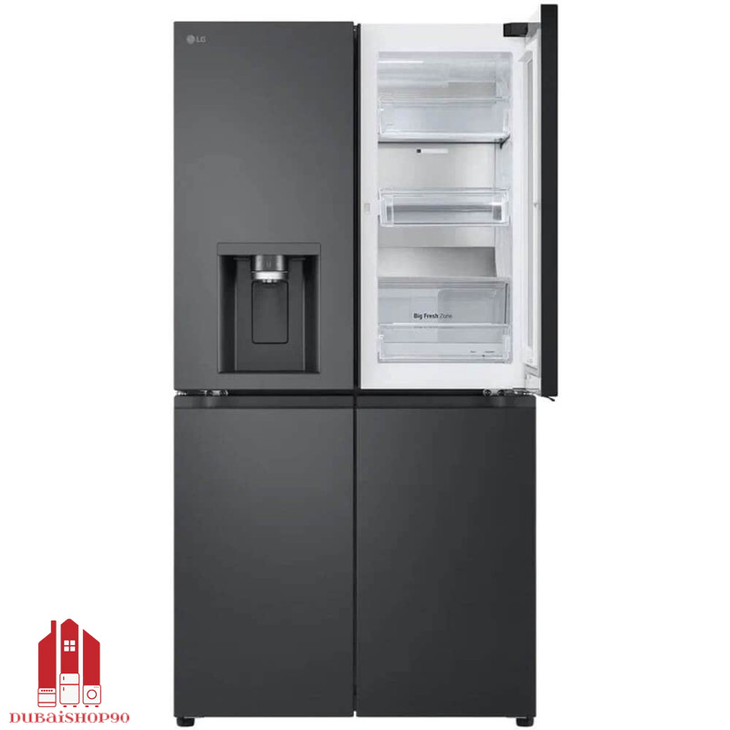 یخچال فریزر ال جی GC-X24FFCBB با طراحی منحصر به‌ فرد و چشم‌نواز خود، نمادی از ترکیب هنر، تکنولوژی و سلیقه‌ مدرن است. بدنه‌ای از جنس استیل ضد لک با رنگ مشکی براق (Matte Black)، نمایی لوکس و حرفه‌ای به این دستگاه داده که به‌راحتی با انواع دکوراسیون آشپزخانه‌های مدرن یا کلاسیک هماهنگ می‌شود. سطوح صیقلی و هندسه‌ی متقارن این مدل، نه تنها آن را به مرکز توجه فضای آشپزخانه تبدیل می‌کند، بلکه حس تمیزی، نظم و اصالت را نیز القا می‌نماید.